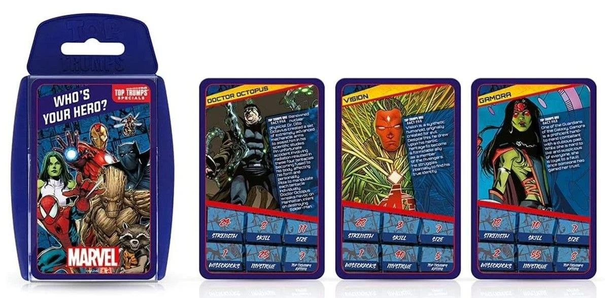 All The Greatest Marvel Characters, And Some Lesser Known Heroes And Villains, Make Up This Brand New Top Trumps Pack. Great Heroes From Stories Like Guardians Of The Galaxy, The Avengers, Ant-man And Spiderman As Well As Their Nemeses Are Together At Last!